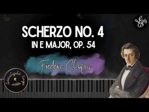 Scherzo No. 4 in E Major, Op. 54 by Frédéric Chopin is a sunny and bright piece of music that was composed in 1842. It is generally calmer in temperament than the preceding three scherzi, although it still possesses some exceptionally passionate and dramatic moments. The piece is of a very different character than Chopin’s previous works in this form, exhibiting more capriciousness and elegance than profundity.